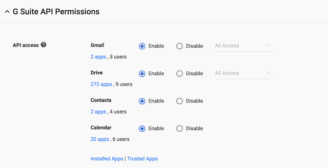 La lista blanca de aplicaciones de OAuth ayuda a mantener seguros los datos de la empresa ya que te permite seleccionar específicamente qué aplicaciones de terceros pueden acceder a los datos de G Suite de los usuarios. Una vez que las aplicaciones forman parte de una lista blanca, los usuarios pueden optar por conceder acceso autorizado a los datos de sus aplicaciones de G Suite. Esto ayuda a evitar que las aplicaciones maliciosas engañen a los usuarios para que accidentalmente otorguen acceso a los datos corporativos. (Consola de administración> Seguridad> Permisos de la API de G Suite)