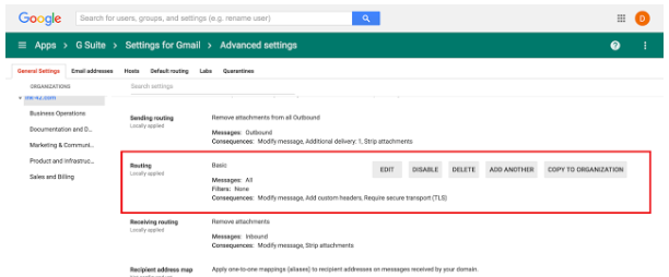 A partir de la semana del 23 de enero de 2017, las opciones de enrutamiento de envío, enrutamiento de recepción, dirección generales y enrutamiento de dominio existentes, se convertirán de sólo lectura. Estos ajustes siguen activos, pero para poder realizar cambios se debe utilizar el botón CONVERTIR, junto a la regla existente. Google ha tomado medidas para hacer este proceso lo más simple posible convirtiendo el ajuste existente anteriormente y asignándolo automáticamente a los nuevos campos. La configuración convertida se coloca en la sección de enrutamiento unificado, donde todas las reglas se pueden gestionar desde un mismo lugar. La configuración antigua ya no será visible en la interfaz de usuario antigua, por lo que no es necesario limpiar las reglas anteriores.
