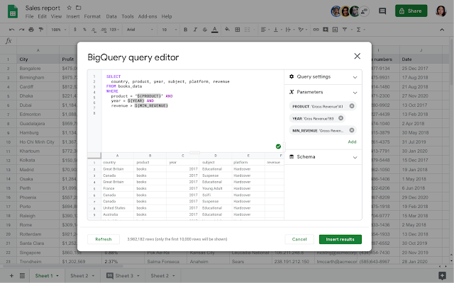 Google está conectando las Hojas de Cálculo con BigQuery para facilitar el análisis y el intercambio de datos. El conector de datos de BigQuery te ayudará a: