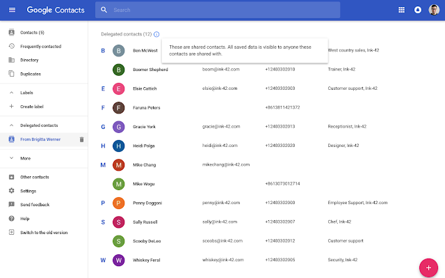 Google agrega la capacidad de delegar la administración de contactos a otra persona en la nueva versión de Contactos de Google (también conocida como la vista previa de Contactos).