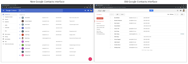 Comparación entre la interfaz de la versión anterior y la nueva de Contactos de Google