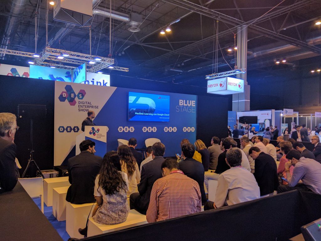 En nuestro stand pudimos hacer demostraciones in situ de la amplia oferta de productos y servicios que ofrecemos a todos los interesados, y además nuestro compañero Bernardo Cabaleiro dio una interesante charla sobre Machine Learning y Google Cloud que contó con numerosos asistentes.