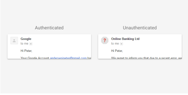- On the web or Android, if you receive a message that can’t be authenticated with either Sender Policy Framework (SPF) or DKIM, you’ll see a question mark in place of the sender’s profile photo, corporate logo, or avatar.