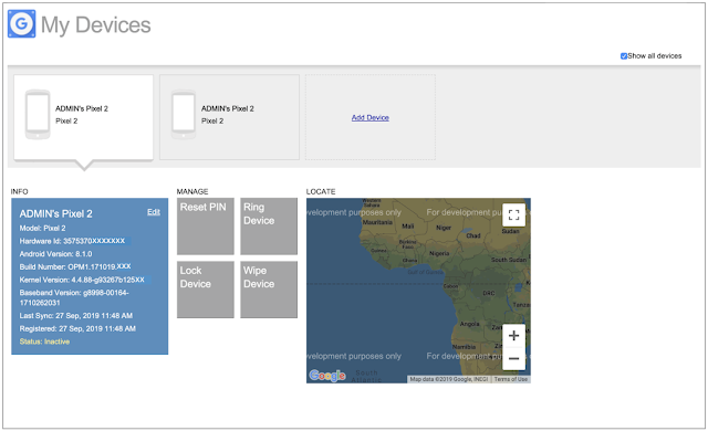 - Options to manage device access and wipe the device if desired. This is the same as the previous site.