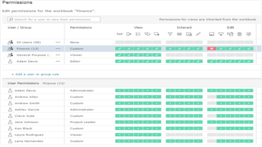 Para controlar el acceso a cada documento en una herramienta de BI, Tableau Software incorpora una función de gestión de permisos de usuario dentro de la aplicación.