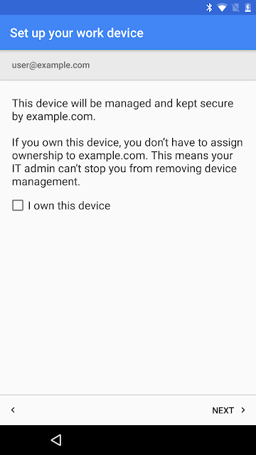 Si tienes habilitada la administración avanzada de dispositivos móviles pero no registras los dispositivos pertenecientes a la empresa en la Consola del administrador, los usuarios deben optar por configurar sus dispositivos como propiedad de la empresa.
