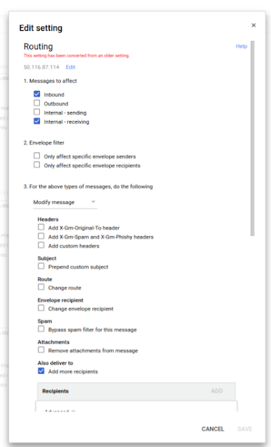 En enero de 2017, Google anunció algunos cambios en la configuración de enrutamiento de Gmail en la consola de administración.