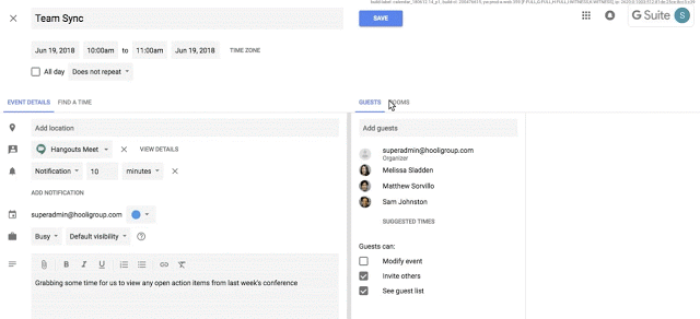 Permite que Calendario de Google sugiera salas de reuniones de forma inteligente
