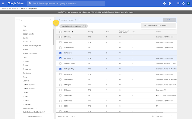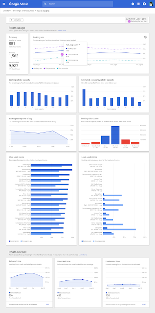 Google ha querido ayudar a las organizaciones a aprovechar al máximo su espacio. Para hacerlo, han reunido todas las funciones relacionadas con la administración de edificios y recursos en un lugar específico de la Consola de Administración. Adicionalmente, Google incorporó dos herramientas nuevas, las estadísticas y la liberación de salas de reuniones, para ayudarte a entender el uso de los recursos de tu organización y optimizar la ocupación.