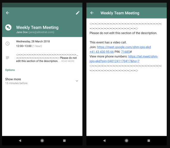 Con este lanzamiento, las personas que usen clientes de Calendario de Google que no muestren las instrucciones de la reunión de forma nativa (por ejemplo, Samsung S Planner) ya no necesitarán ir a la versión web para unirse.
