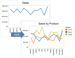 - Muy Interactivo. Tableau te permite hacer sus informes contra múltiples fuentes dispersas de información, crear paneles de control interactivos que luego se pueden compartir con la organización publicando en la web, Sharepoint, Google Sites…desde un ordenador o un iPad. No será necesaria la ayuda de informática para realizar estos cambios; el usuario final puede hacerlo con un click.