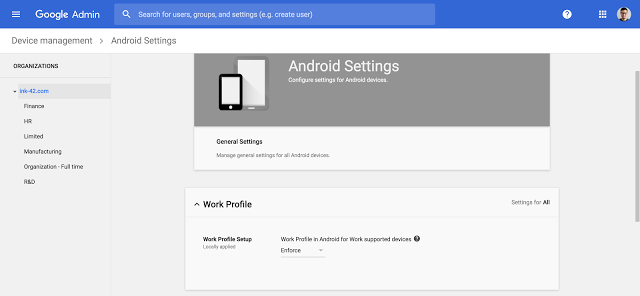 Os perfis de trabalho permitem que você separe os aplicativos da organização dos aplicativos pessoais, mantendo os dados pessoais e corporativos separados. Mediante o uso da gestão de dispositivos integrada em G Suite para reforçar o uso de perfis de trabalho, você pode incluir em uma lista branca os aplicativos que acessam dados corporativos e bloquear a instalação de aplicativos de fontes desconhecidas. Agora você tem controle total sobre quais aplicativos têm acesso a dados corporativos.