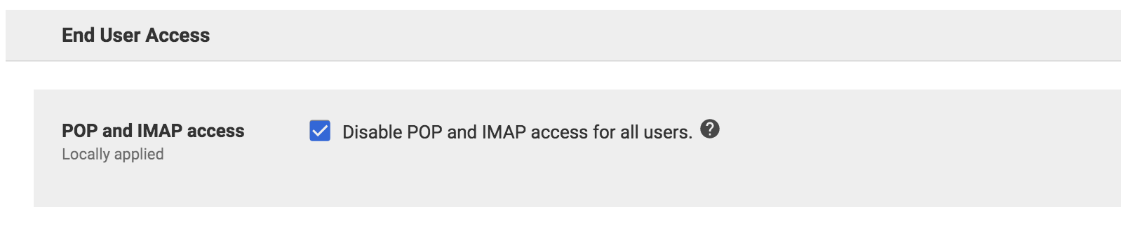 Ao optar por desabilitar POP e IMAP, Google Sync e G Suite Sync para Microsoft Outlook, os administradores podem garantir que uma parte significativa dos usuários do G Suite utilize somente clientes do Gmail e se beneficiem das proteções de phishing integradas que ele proporciona. Entre as medidas adicionais, está incluso habilitar a lista branca de aplicativos do OAuth para bloquear clientes de terceiros como sugerido anteriormente no artigo.