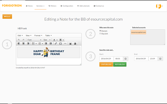 Forigroton é um serviço que nos permite realizar certas tarefas administrativas em torno do email do Google, destinadas ao “controle de danos” e a aplicação de políticas no serviço de email.