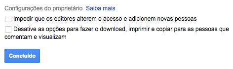 Com Information Rights Management (IRM), os usuários do Google Drive agora podem desativar o download, impressão e cópia de arquivos a partir do menu Arquivo > Compartilhar – um recurso perfeito quando você compartilha informações confidenciais que não deseja filtrar. Esta opção está disponível para qualquer arquivo armazenado no Google Drive, incluindo documentos, planilhas e apresentações criadas no Google Docs.