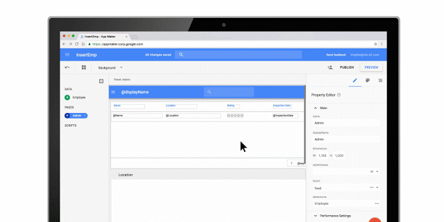 - Passar rapidamente da idéia à aplicação: App Maker torna fácil para TI ou mesmo para os desenvolvedores (incluindo os analistas e administradores de sistemas) iterar rapidamente desde um protótipo para a aplicação exibida. Oferece um poderoso IDE baseado na nuvem que incorpora planilhas pré-configuradas, uma interface de usuário de arrastar e soltar e modelo de dados para acelerar os esforços de desenvolvimento da aplicação. App Maker também abrange normas abertas e populares como HTML, CSS, Javascript e o marco visual de desenho de materiais do Google, para que os desenvolvedores possam criar aplicações rapidamente, em um ambiente de desenvolvimento que aproveita suas habilidades e conhecimentos existentes.