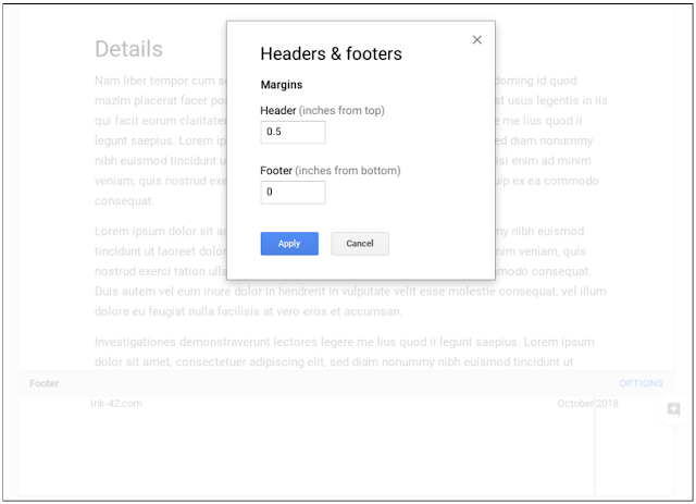 Novas opções de margem de cabeçalho e rodapé da página no Google Docs