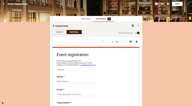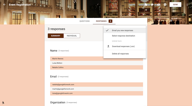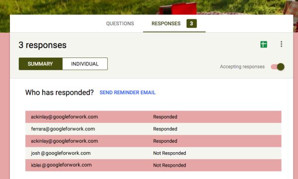 Além do resumo de respostas que atualmente está disponível no editor de formulários, agora os criadores também podem ver respostas individuais. Os formulários do Google permitirão aos usuários, tanto conhecer como visualizar respostas de forma separada.