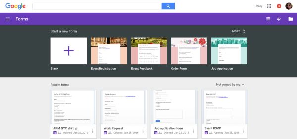 Utilizar modelos a partir da tela inicial do Google Forms