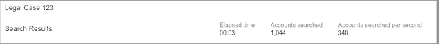 Quando terminar sua pesquisa, além de seus resultados, você visualizará o tempo total dedicado à pesquisa. Para uma pesquisa no Gmail, você também verá a quantidade total de contas pesquisadas e a quantidade de contas pesquisadas por segundo. Assim, você terá idéia do rendimento do Vault durante a pesquisa ampla.